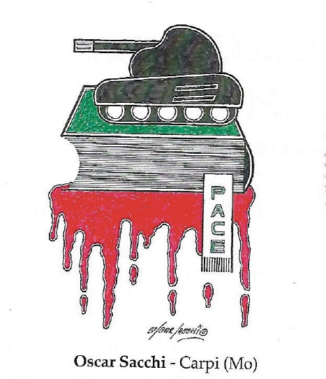 Tra le trenta vignette dedicate al tema Chi vuole la pace, prepari la pace pubblicate sul numero 67 del trimestrale Vitt & Dintorni (Associazione Amici de “Il Vittorioso”) di marzo, ve ne è una dell’umorista di casa nostra, Oscar Sacchi.