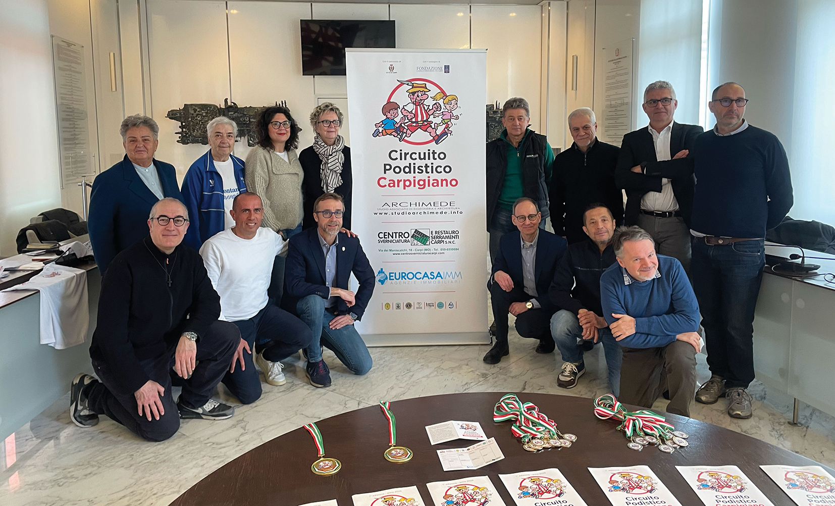 Dalla Camminata Città di Carpi dell’Atletica Cibeno, giunta alla 48ª edizione, che si svolge domenica 15 marzo, alla nona edizione della White Run organizzata dall’associazione di volontariato Ho avuto sete, che chiude il calendario il 27 settembre, passando per la 44ª edizione del Giro delle risaie del Circolo La Fontana, in programma il 12 aprile; la decima edizione della Corsa dei Leoni, il 26 aprile, organizzata dal Lions Club Carpi Host con il Club Giardino; la 24ª edizione della QuartiRun, della Parrocchia di Quartirolo, il 12 luglio; la Quattropassi dopocena della Parrocchia di Cortile, il 1° agosto, la più longeva con i suoi 53 anni; la 28ª edizione della Madonna di Puntzee della Parrocchia di San Marino, il 28 agosto. “Correre o camminare insieme – spiega Fabio Ghelfi, in rappresentanza di tutti i soggetti coinvolti – ti aiuta ad affrontare al meglio la vita quotidiana. Fare movimento fa bene al corpo e allo spirito così come chiacchierare e relazionarsi con chi ti passeggia accanto. Abbiamo pensato a un vero e proprio passaporto da timbrare ogni qualvolta si aderisce a una delle manifestazioni podistiche per poter poi ritirare un premio, da una medaglietta a una maglietta tecnica a seconda del grado di partecipazione. Tutti possono cimentarsi, dai bambini alle famiglie, dai giovani ai più anziani poichè i percorsi hanno chilometraggi differenti. Il nostro auspicio, futuribilmente parlando, sarebbe quello di riuscire a riportare in Piazza Martiri un grande evento, al termine dell’anno scolastico, come è stato per anni la Dorando Pietri”.