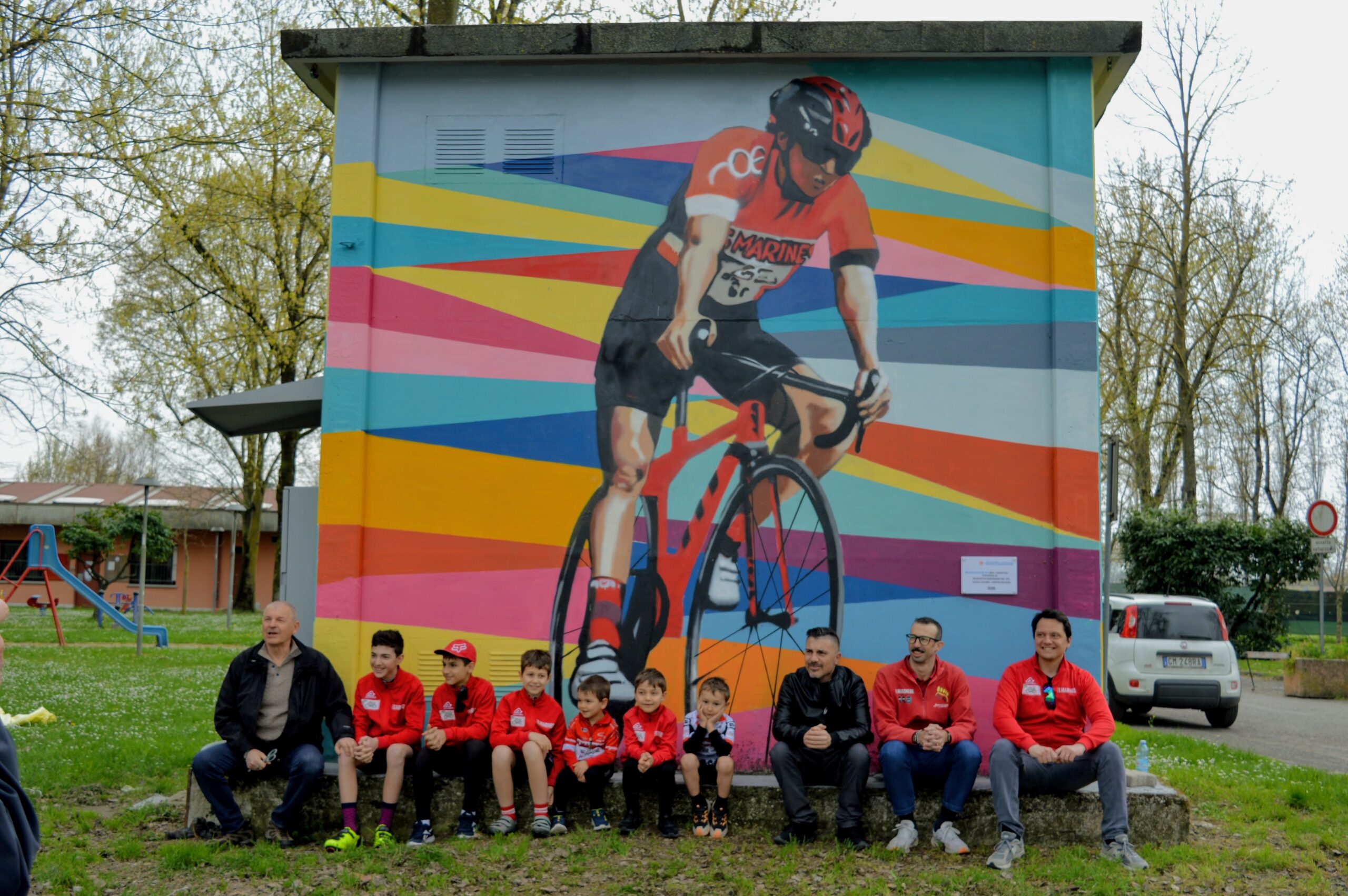 Mentre il mondo del ciclismo celebrava la “Classica di Primavera”, la Milano-Sanremo, la frazione di San Marino di Carpi ha vissuto una propria giornata storica all’insegna del colore e del senso di appartenenza. Nel pomeriggio di sabato 22 marzo, la Polisportiva Sanmarinese ha ufficialmente inaugurato il nuovo murales realizzato dall’artista Fabio Valentini, trasformando un anonimo manufatto tecnico in un simbolo di vitalità sportiva.