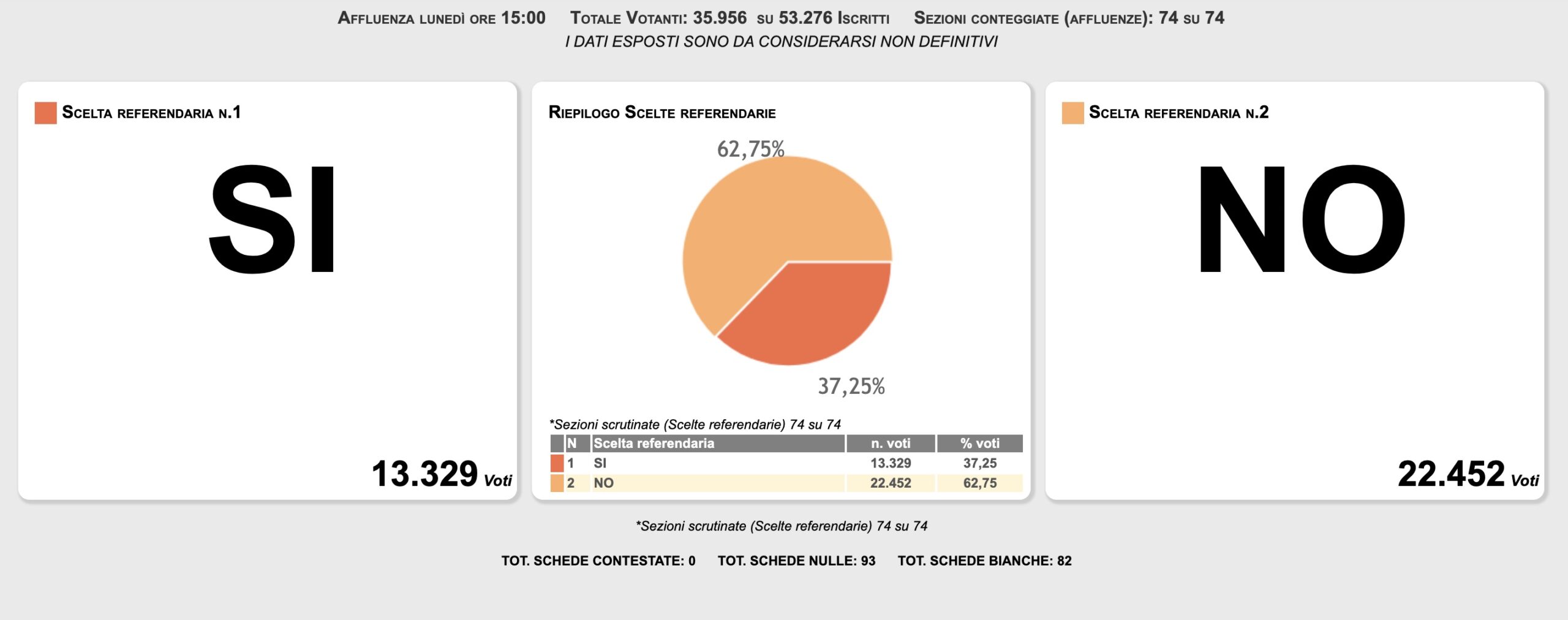 Seggi chiusi, ancora stamattina molti carpigiani si sono recati alle urne. Lo spoglio delle schede per il referendum costituzionale sulla giustizia è terminato. A Carpi ha vinto il NO con 22.452 voti (62,75%), per il SI sono stati 13.329 (37,25%)