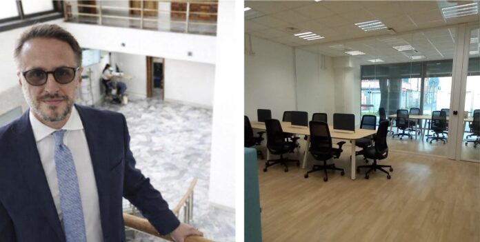 Il nuovo spazio, accanto all’ufficio postale, dispone di un ufficio privato per sei persone, due uffici privati per quattro persone, un ufficio privato da due persone e un open space con sei postazioni, oltre ad un’accogliente area break.