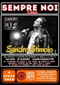 Sabato 4 aprile alle 21 a 35 anni dal debutto dei Sempre Noi nella stessa location il Circolo Cabassi di Carpi ospita il concerto di Sandro Stimolo per ricordare la musica e la vita di Gian Paolo Lancellotti ripercorrendo i tanti successi da Ho difeso il mio amore a Io vagabondo.