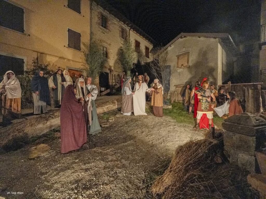 Torna a Frassinoro, venerdì 3 aprile, in occasione del Venerdì Santo, la Via Crucis Vivente:circa 500 figuranti in costume animeranno le vie del paese per la rappresentazione delle 14 stazioni, tradizione che si rinnova ogni tre anni dal 1906. Il paese nell’Appennino modenese chiude gli ingressi dalle 17, la celebrazione inizia alle 20 nella chiesa abbaziale, la processione parte alle 21 dal sagrato. Ogni stazione è una scena plastica e silenziosa: sono i pellegrini a sfilare lungo il percorso, illuminato da oltre 1.500 torce, mentre i figuranti restano immobili nelle loro pose.