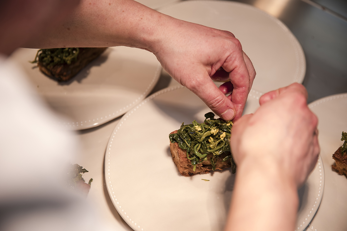 Per il momento aperto solo alla sera, in agriturismo, sarà possibile gustare “ tutti i prodotti della nostra terra in una chiave insolita dal momento che mio fratello ama sperimentare utilizzando tecniche innovative e proponendo consistenze e abbinamenti insoliti e capaci di stupire il palato. Ogni prodotto infatti, anche se povero, può trasformarsi in un piatto del tutto inaspettato grazie a tecnica e creatività” prosegue Simone. Per Gabriele “stare dietro al bancone di una cucina non è solo un sogno che si realizza bensì un modo per onorare la memoria dei nostri nonni” spiega. Ad attendervi, solo su prenotazione il martedì, mercoledì e venerdì sera, sarà un menù degustazione a chilometro zero, “una vera e propria esperienza sensoriale durante la quale assaporare i prodotti di Saranto  e quelli di altre realtà virtuose rigorosamente prodotte nella nostra regione”. Le idee ai due fratelli non mancano: passeggiate nell’orto con la nutrizionista, brunch domenicali… un passo alla volta, ne siam certi, Simone e Gabriele ci stupiranno ancora. Dal campo al piatto, per portare avanti quell’amore per la terra e per i piatti della tradizione che caratterizza da sempre la loro famiglia.