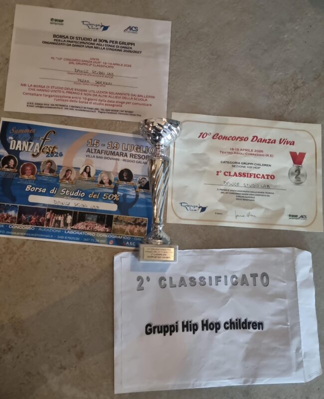 Con la coreografia Dream Seeker firmata da Barbara Freda, le giovani ballerine hanno conquistato il secondo gradino del podio nella categoria Children Hip Hop del concorso Danza Viva di Correggio, aggiudicandosi ben tre borse di studio.
