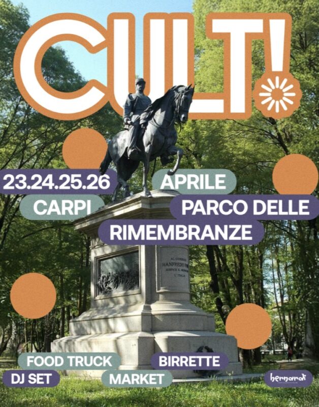 Carpi si prepara a qualcosa di diverso. Dal 23 al 26 aprile il Parco delle Rimembranze diventa CULT!: un progetto che unisce musica, persone, cibo, market, sport e creatività in un unico spazio aperto. Non un evento nel senso classico. Piuttosto un luogo che prende vita e cambia ritmo durante la giornata: più lento al mattino, più acceso la sera. Un flusso continuo, naturale.