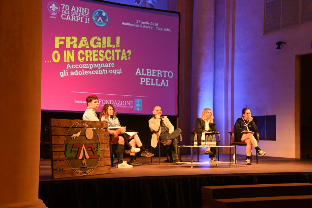La necessità di riflettere sull’adolescenza ha richiamato genitori, educatori e insegnanti in un Auditorium San Rocco tutto esaurito per Alberto Pellai, medico, psicoterapeuta dell’età evolutiva, ospite lunedì 27 aprile a Carpi. L’incontro pubblico “Fragili… o in crescita? Accompagnare gli adolescenti oggi” rientra nell’ambito delle iniziative per festeggiare il 70° anniversario del Gruppo Scout Carpi 1.