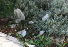 Questa è la desolante condizione in cui versa l’area di raccolta di plastica e vetro in via Anna Frank.